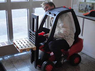 Den här fullspäckade veckan har jag bland annat haft praktik med gymnasieeleverna från GKC i Gnosjö. Torsdag och fredag har vi kört med ledstaplare, skjutstativtruck och motviktstruck och åtta glada elever blev godkända truckförare. Bra jobbat killar! Lukas gick ett steg längre, och ville absolut bli godkänd på mini trucken också. Och eftersom han lyckades ta sig in i den, blev det med bravur godkänt!
