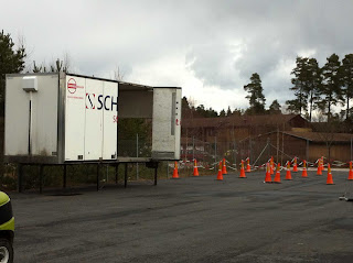 Till V 13 när vi kör nästa truckförarutbildning i Gislaved kommer vi att ha vår nya körgård klar. Den kommer att stå permanent uppställd och där kan vi öva de praktiska momenten med olika typer av gods. Alla grejer finns hemma så den skall bara monteras upp så fort vintern släpper taget lite. Kort kommer så fort den är klar.